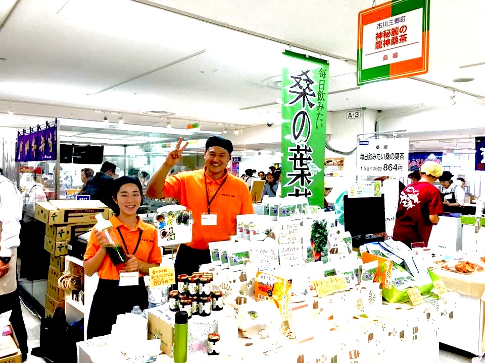 全国47都道府県、出店事業者は350社。集まった名産・特産品は、その数なんと3000点以上!ご当地自慢の逸品の数々がここに大集結します。山梨県の代表の想いをもって桑郷の桑の葉茶を販売します!