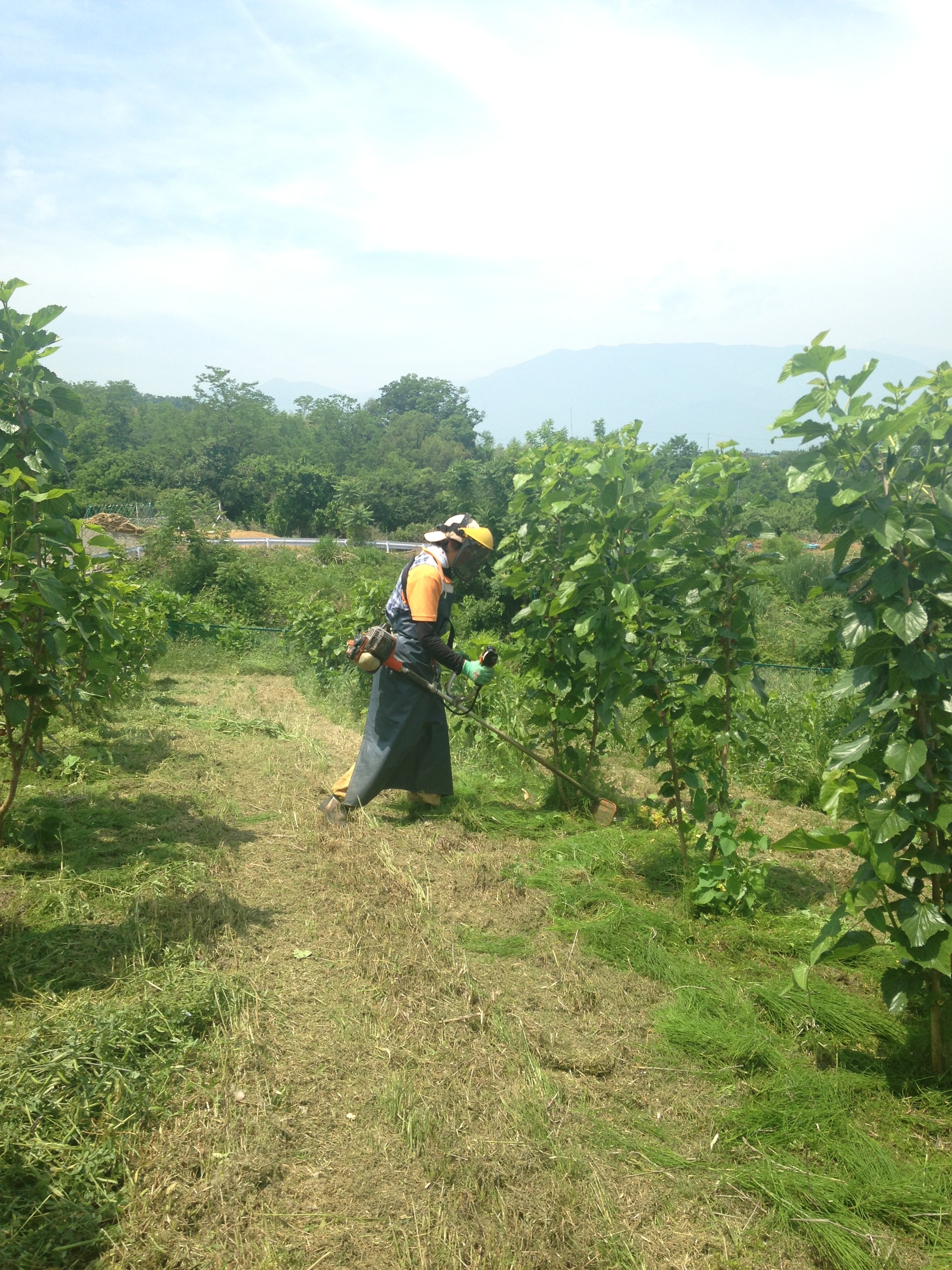暑さに負けず、畑のスタッフは桑畑の管理で太陽の下におります。