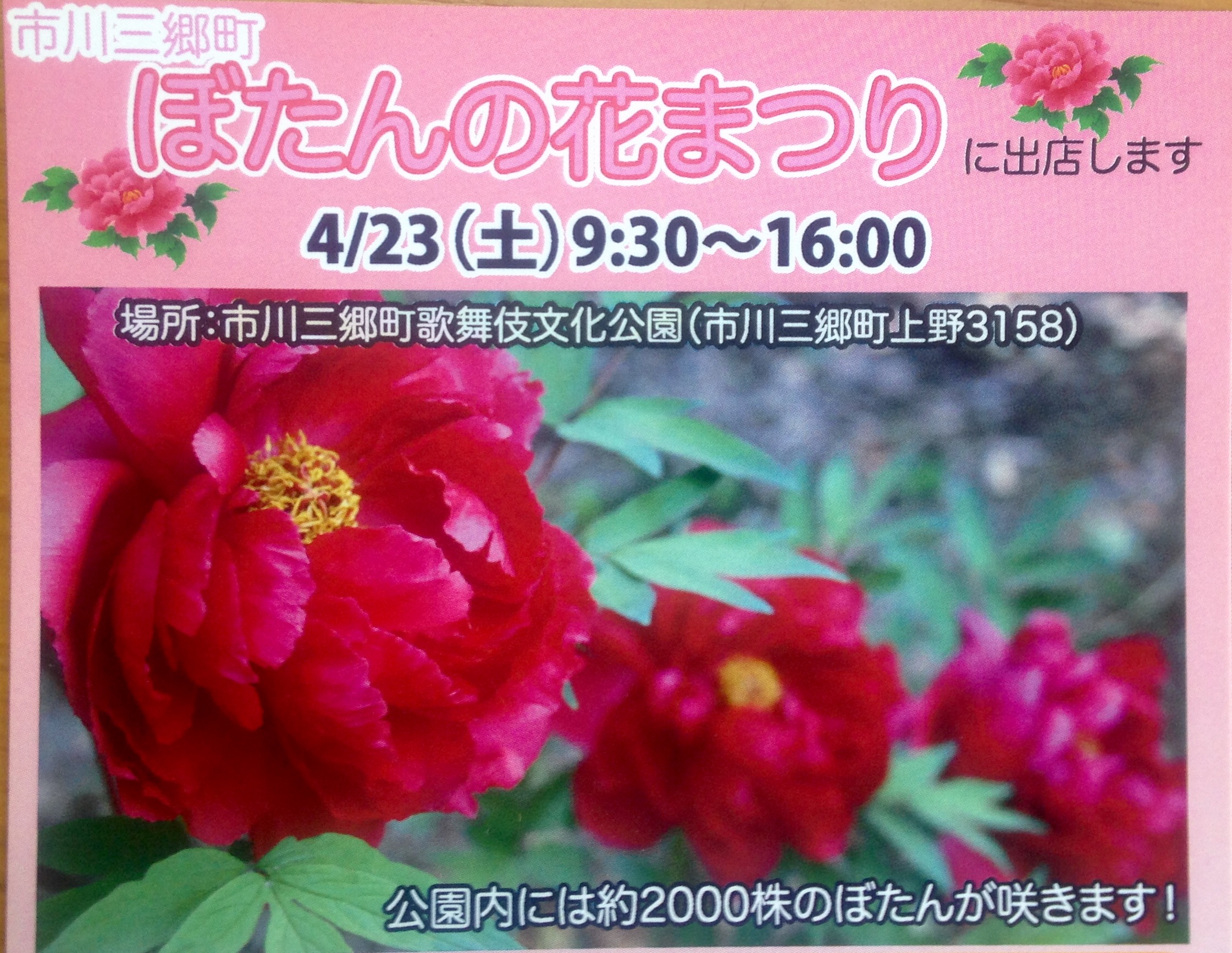 4月23日 市川三郷町のぼたんの花まつりに出店します。