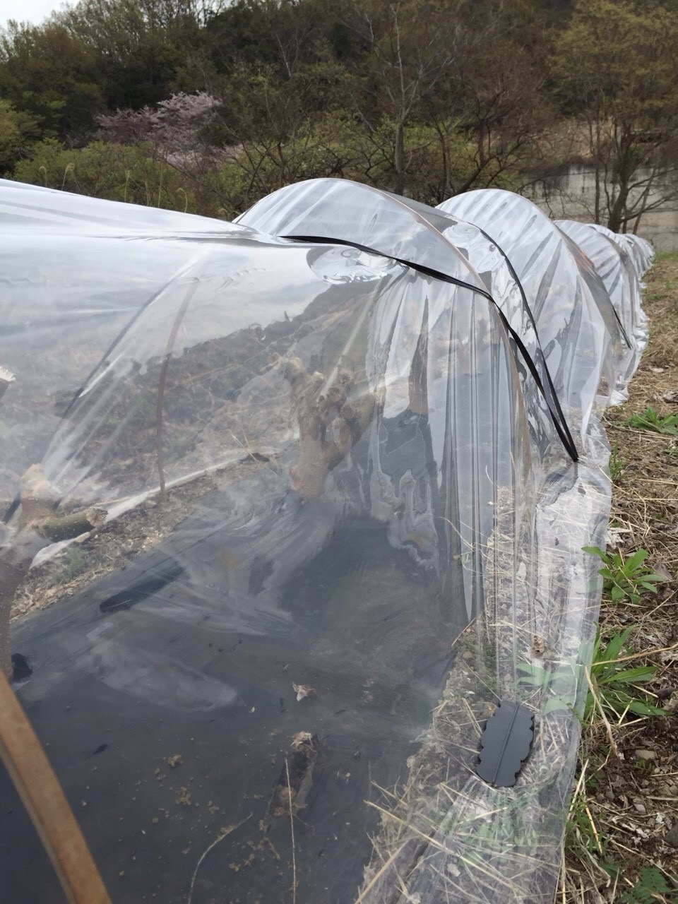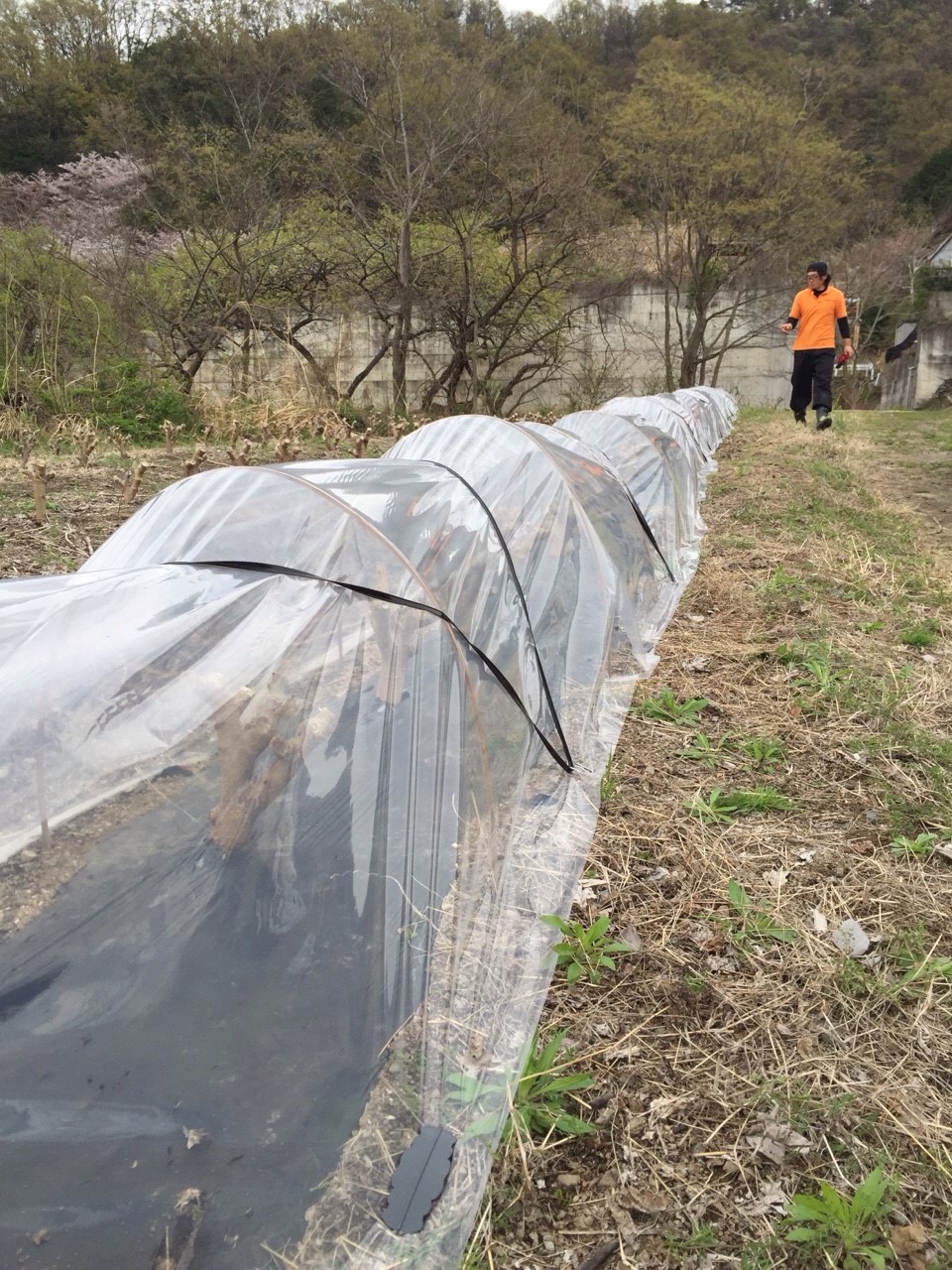 桑の新芽が早く大きくなるように、スタッフがトンネルを作りました。
