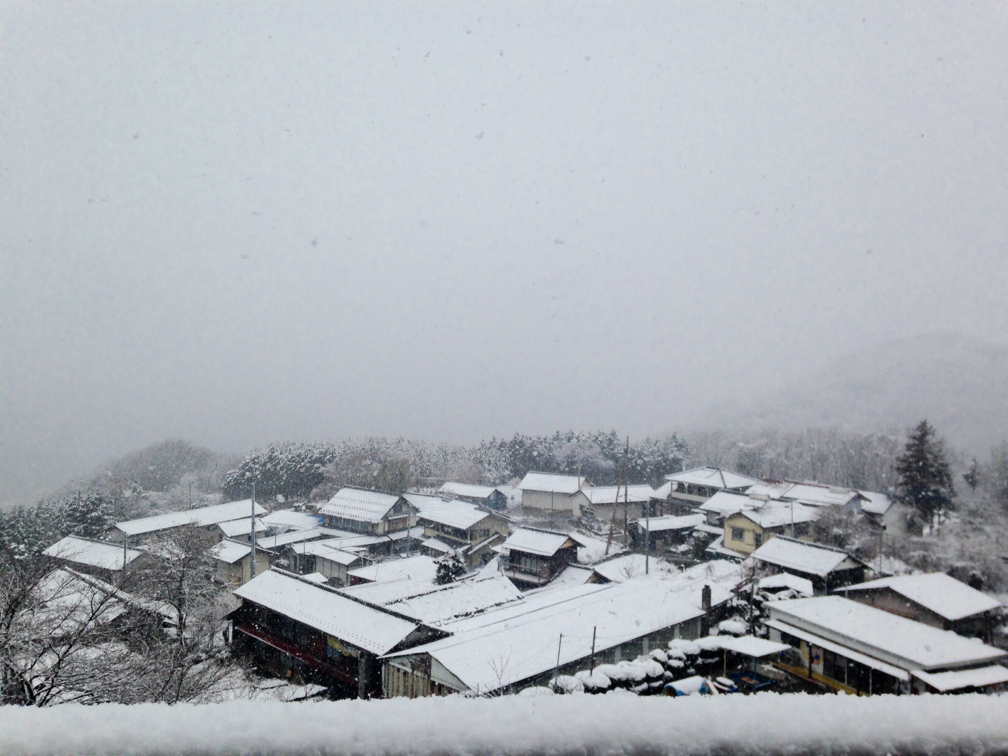 雨が降り続いている桑郷、雨に雪が混じってきました。