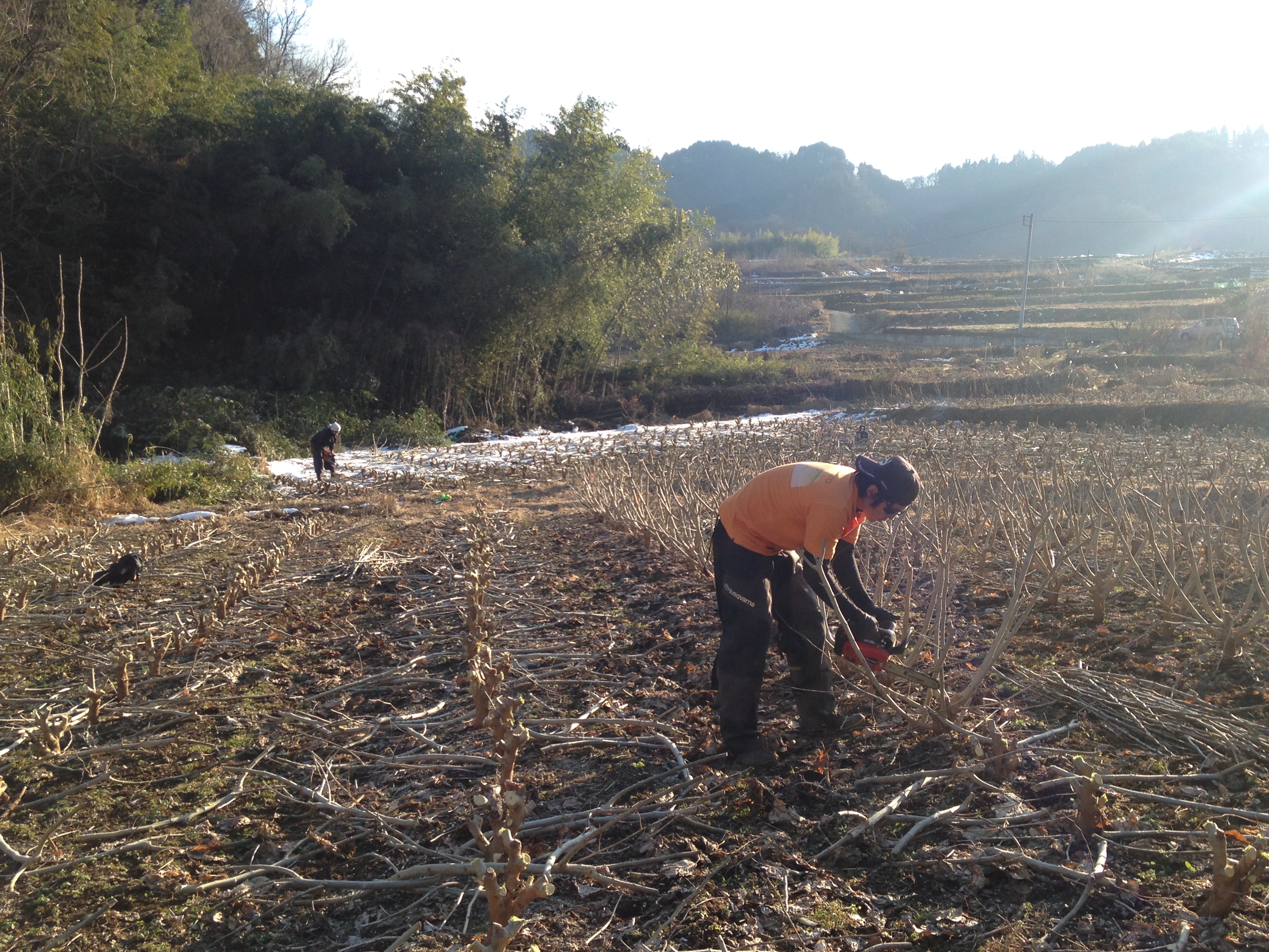 帰り道、剪定作業をしている桑畑がとても近かったのでシュークリームを持って寄ってみました。