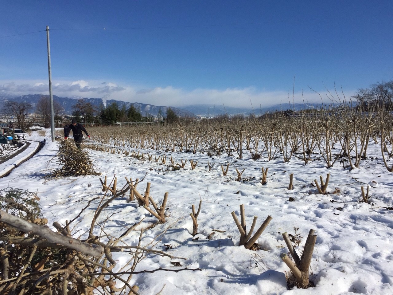 雪が降った日は畑に出れませんでしたが、本日より剪定作業にあたっています。