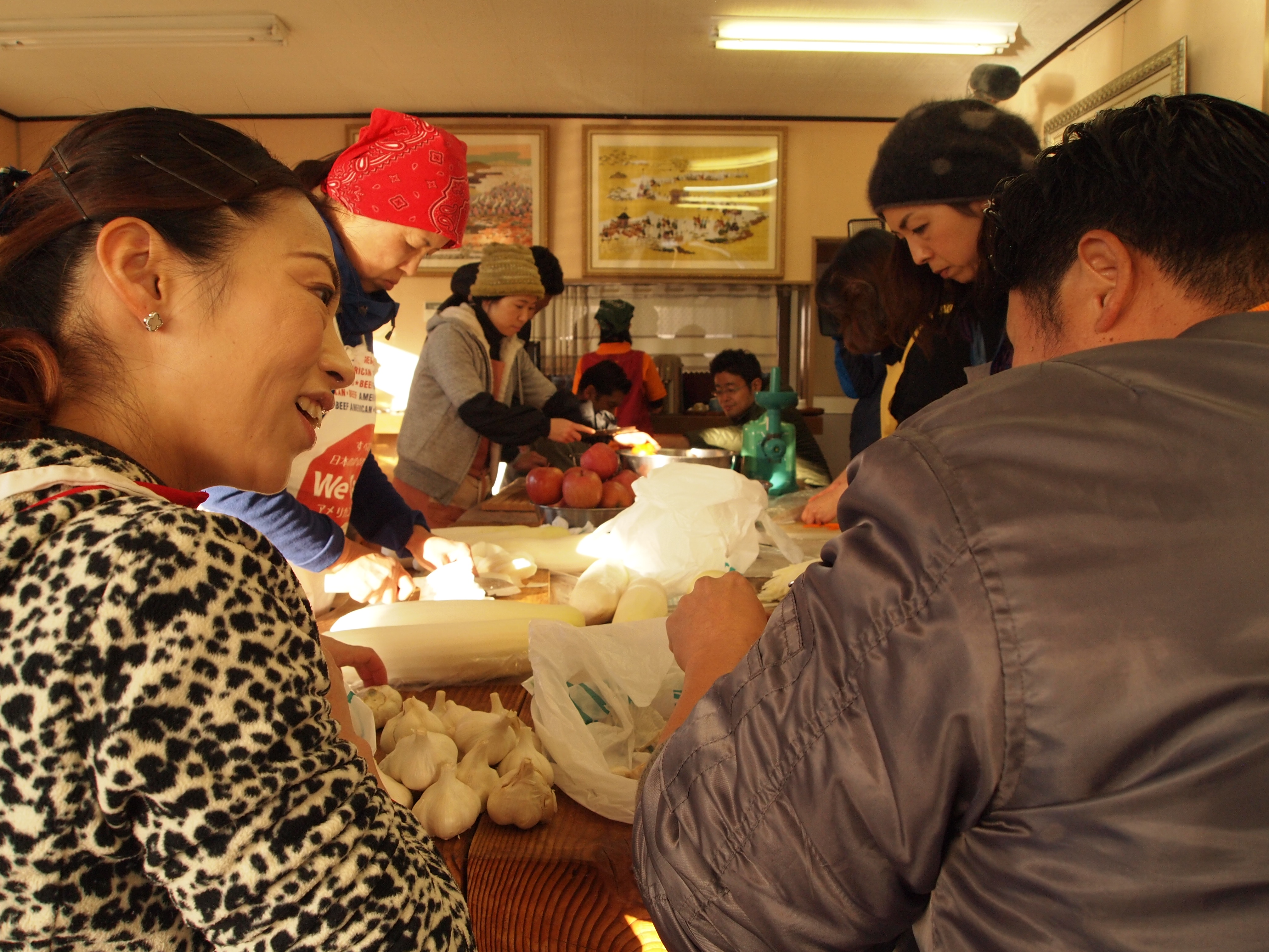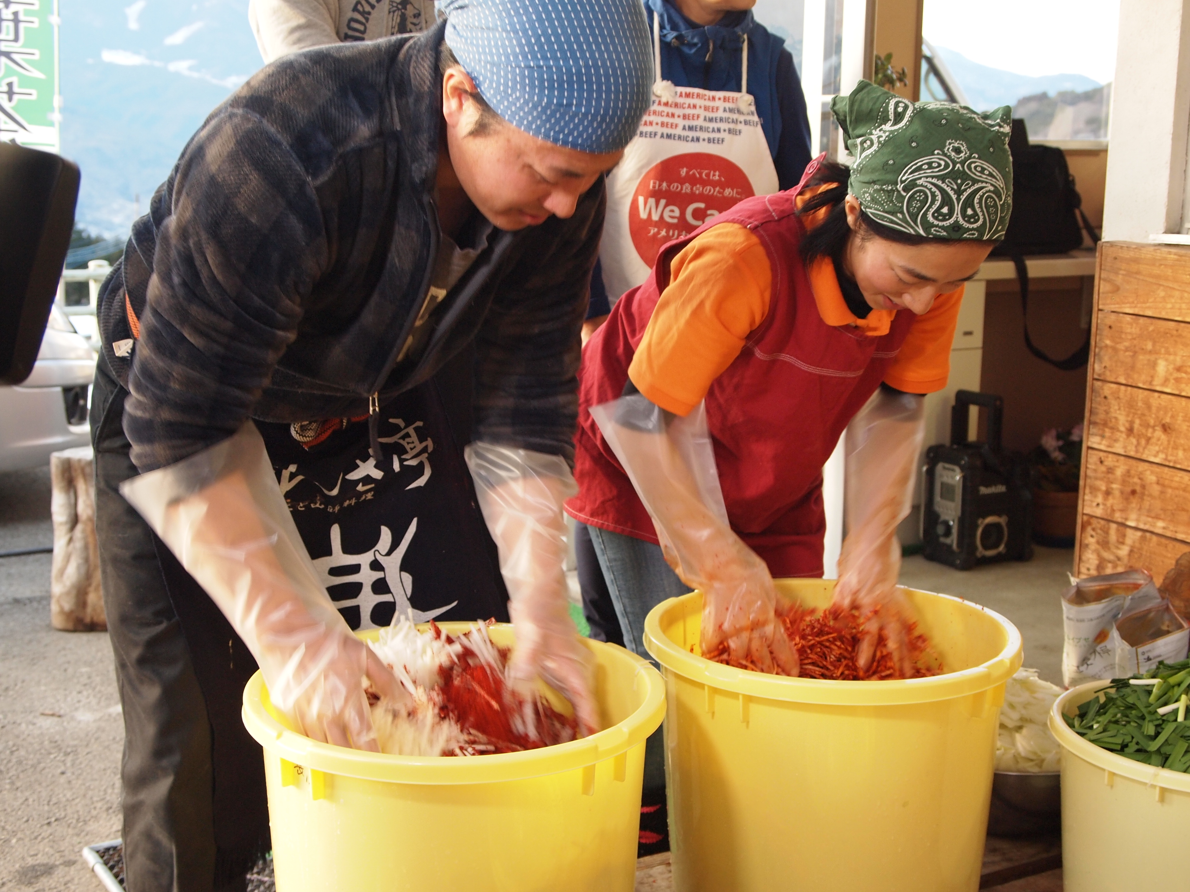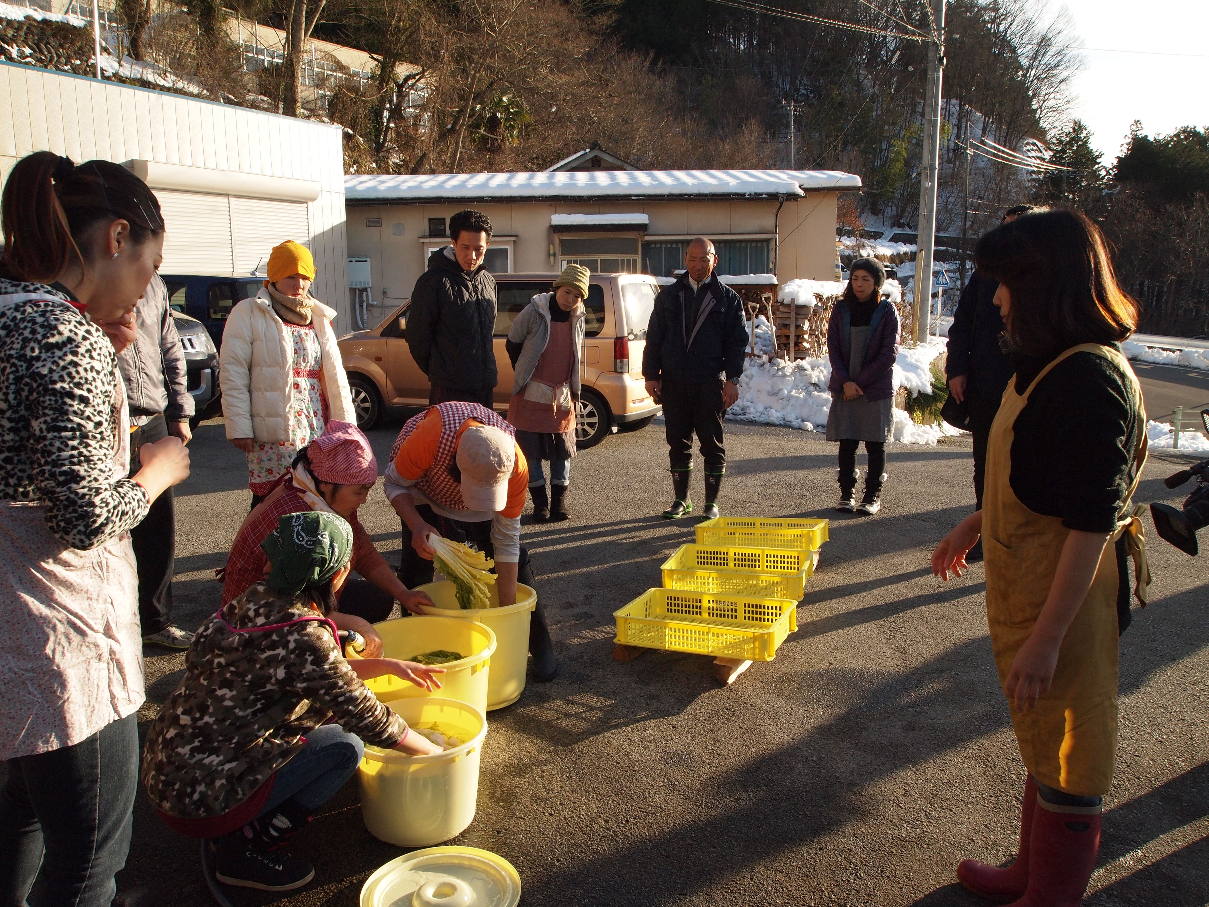 続いて、寒い中ではありましたがキムチづくり。